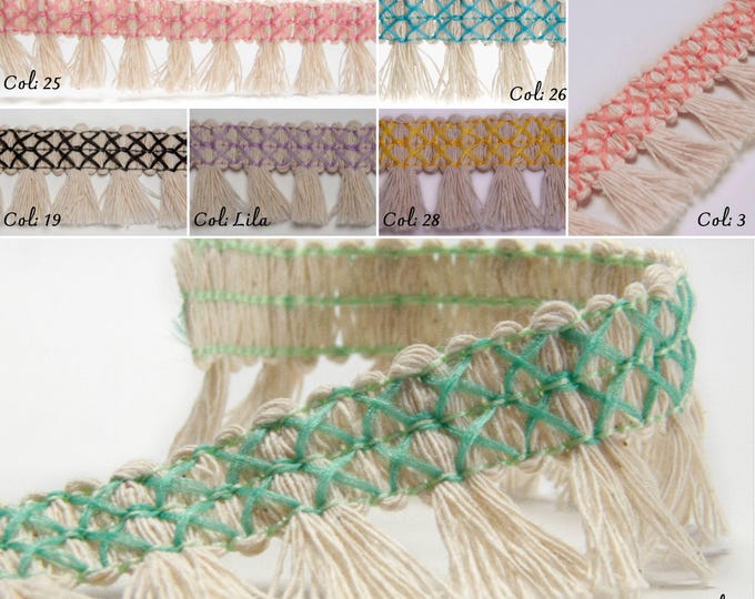 Cotton jute Rayon Tassel Fringe Trim | 10 cm - 3,93 inches height Tassel Trim/ 65 Available Rayon Shades/ Boho decoration tassel fringe